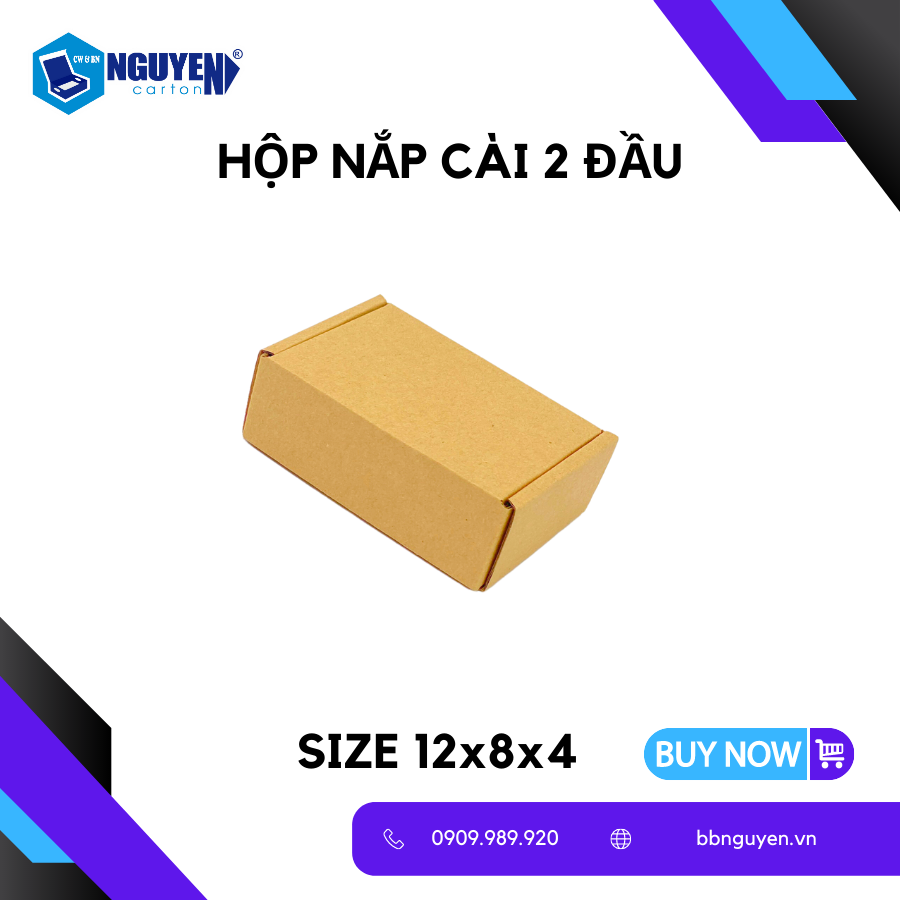 - Tên sản phẩm: Hộp Carton Nắp Gài - 12x8x4