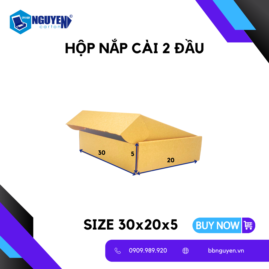 - Tên sản phẩm: Hộp Carton Nắp Gài - 30x20x5